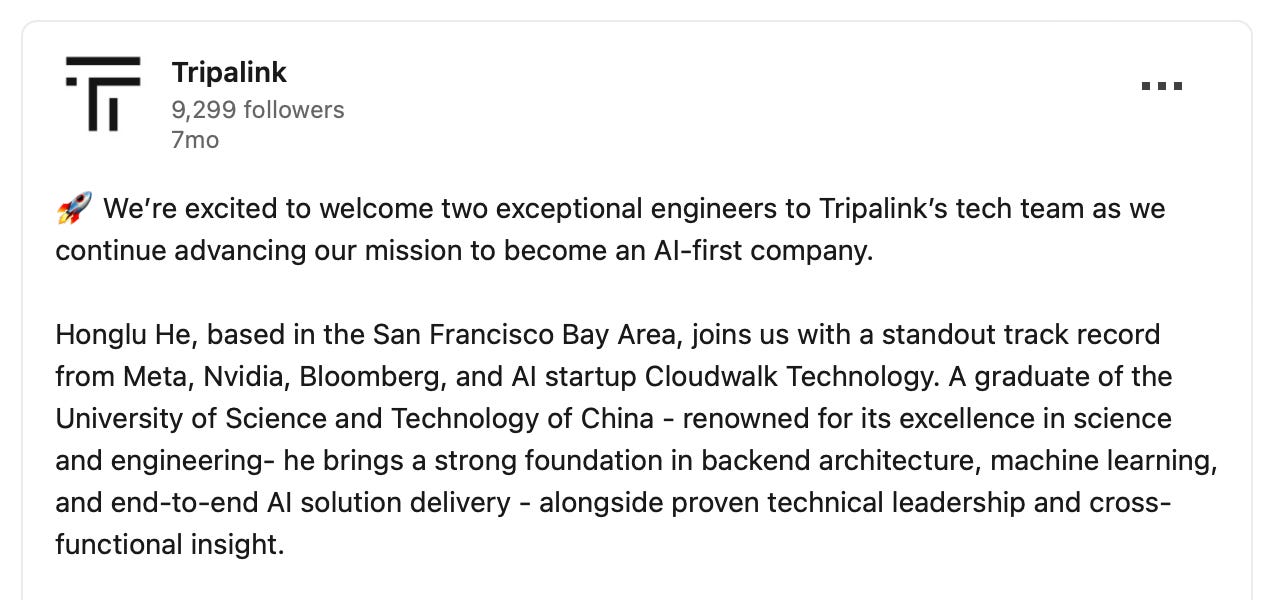[11] https://www.linkedin.com/posts/tripalink-corp_tripalink-engineeringexcellence-aiinnovation-activity-7325272938683785216-32Nc